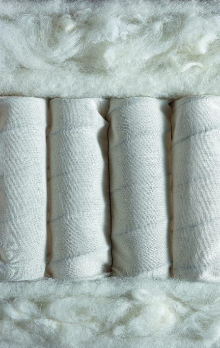 Olemme pussijousien edelläkävijä ja olemme käyttäneet niitä siitä lähtien, kun Vispring perustettiin vuonna 1901. Sekä runkopatjan että patjamme ovat pussijousitettuja, ja ne toimivat yhdessä luodakseen äärimmäisen tukijärjestelmän lantiolle, hartioille ja selkärangalle. Jousemme valmistetaan edelleen samalla tavalla – korkealaatuista kestävää vanadiiniterästä oleva jouset kääritään yksittäin luonnonmukaisista materiaaleista valmistettuihin pusseihin.